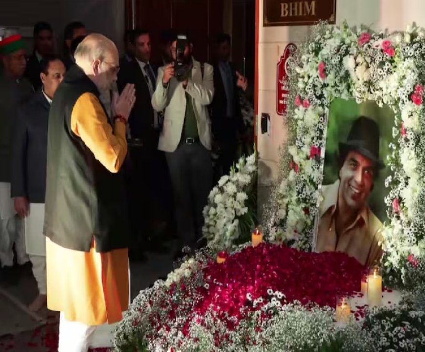 From the prayer meet in Delhi, the above photo captures Hema Malini addressing the gathering with quiet strength, as her daughter Esha stands close by in solemn support. Another poignant image shows Home Minister Amit Shah offering a floral tribute to Dharmendra, a gesture of respect to the legendary actor.